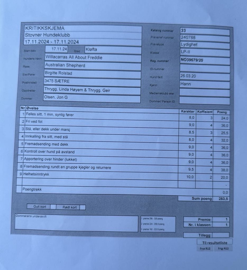 Vi gratulerer så masse til Birgitte og Freddie ( Willacarras All About Freddie) med siste nappet til Lp 2 tittel og øverst på pallen på stevne i Kløfta denne helgen. Noe avdet absolutt beste jeg har sett av dere Birgitte.