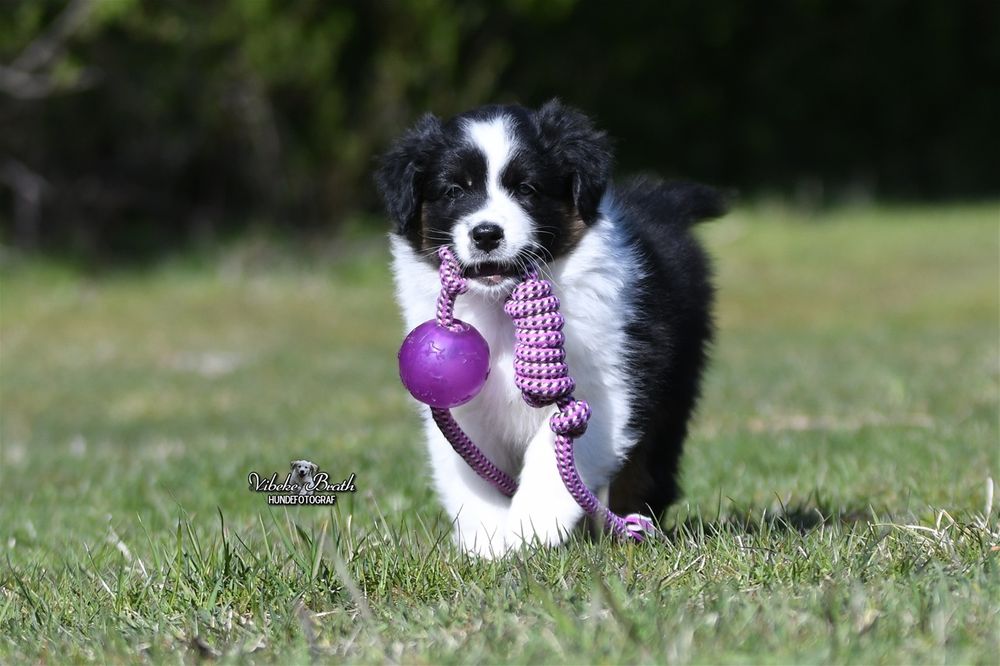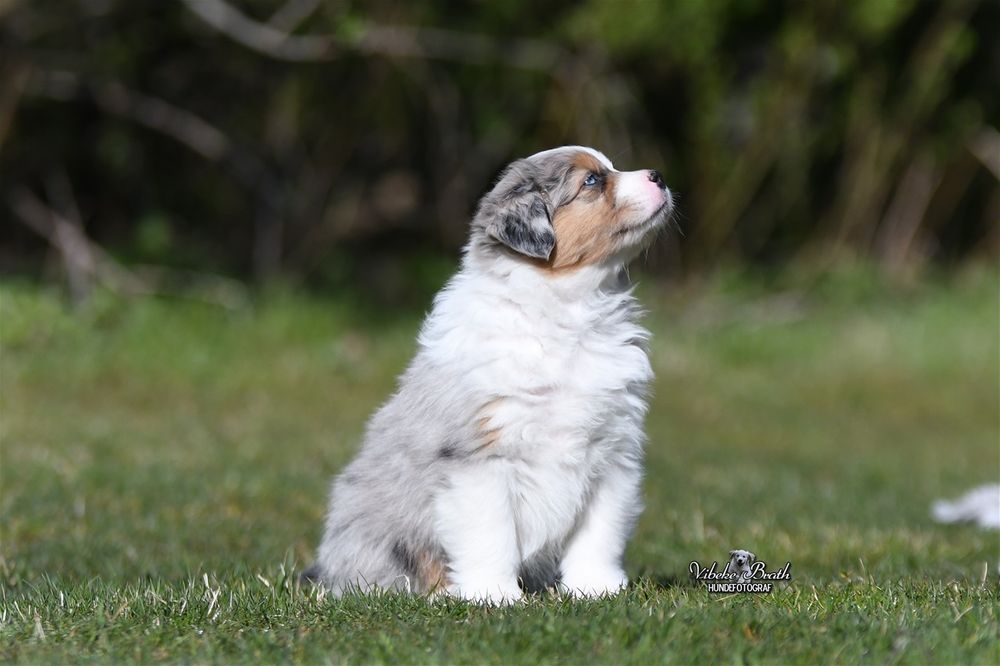 Valpene blir levert med helseattest, vaksine, registrert i NKK og øyelyst.