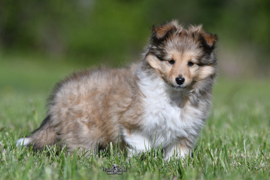 Valpene blir levert med helseattest, vaksine, registrert i NKK og øyelyst.